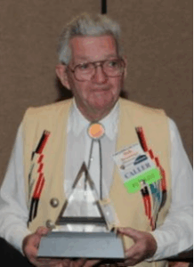 “He has been involved in square dancing for over 65 years. He started playing drums in a square dance orchestra organized by his mother as a 4-H club in 1933 or 1934. She traveled by horse and buggy as a young girl to play piano at square dances with her father, later played sound effects for silent movies, and eventually became a concert pianist. She wanted her sons to have some sort of a musical education and she overcame many problems to form the first music 4-H club in the U.S. Eventually, the entire family was involved in the square dance activity.”