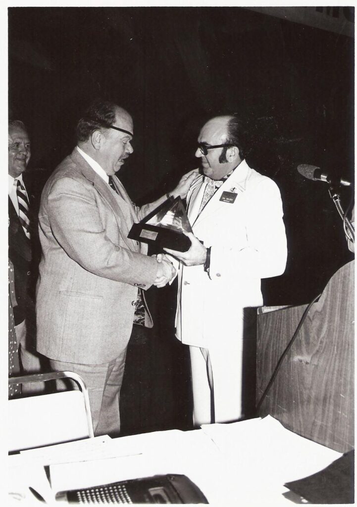 In 2000 the Board removed the restriction against presenting this award posthumously. This award is an acrylic pyramid on a wood base, and is accompanied by a framed certificate.